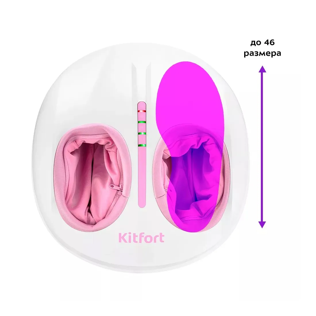 У массажёра пластиковый корпус с двумя отверстиями для ступней до 46 размера. Используйте массажёр на босую ногу или в носках.