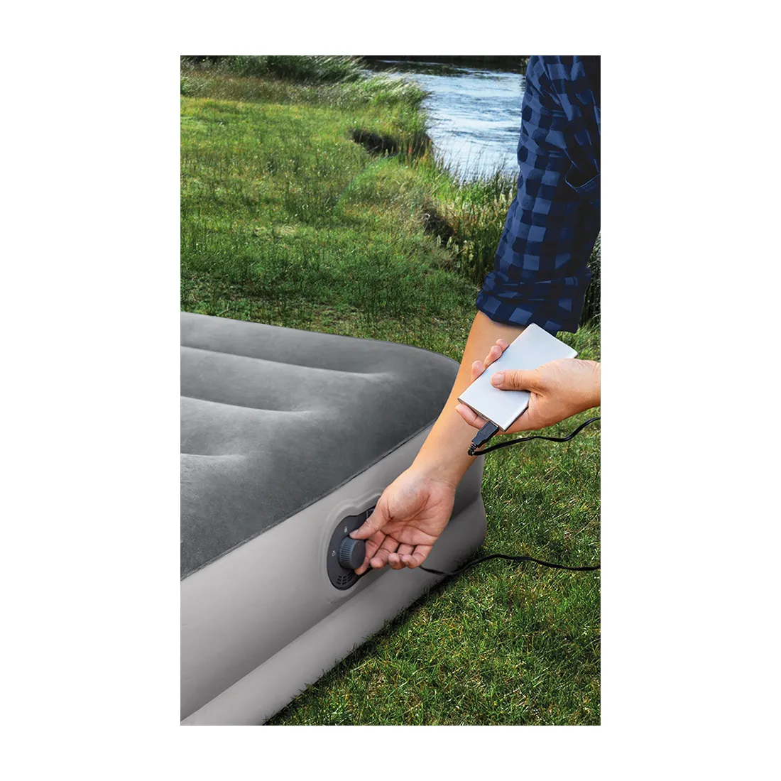 Intex Twin Dura-Beam Prestige Airbed 64114 — отличное портативное решение для сна со встроенным насосом, работающим от любого источника питания USB-A с номиналом 2А и выше. Удобно и универсально использовать с зарядным устройством для телефона, автомобильным зарядным устройством USB 12В или портативным аккумулятором. Насос USB не только меньше и легче, но и более энергоэффективен, чем традиционные электронасосы. Просто подключите прилагаемый шнур USB-A к источнику питания по вашему выбору и накачайте или спустите воздух за считанные минуты. Кровать Intex построена с использованием запатентованной конструкции Fiber-Tech, обеспечивающей исключительную долговечность и поддержку для освежающего ночного сна в любом месте. Надувная мебель/надувной матрас/матрас intex/надувная кровать