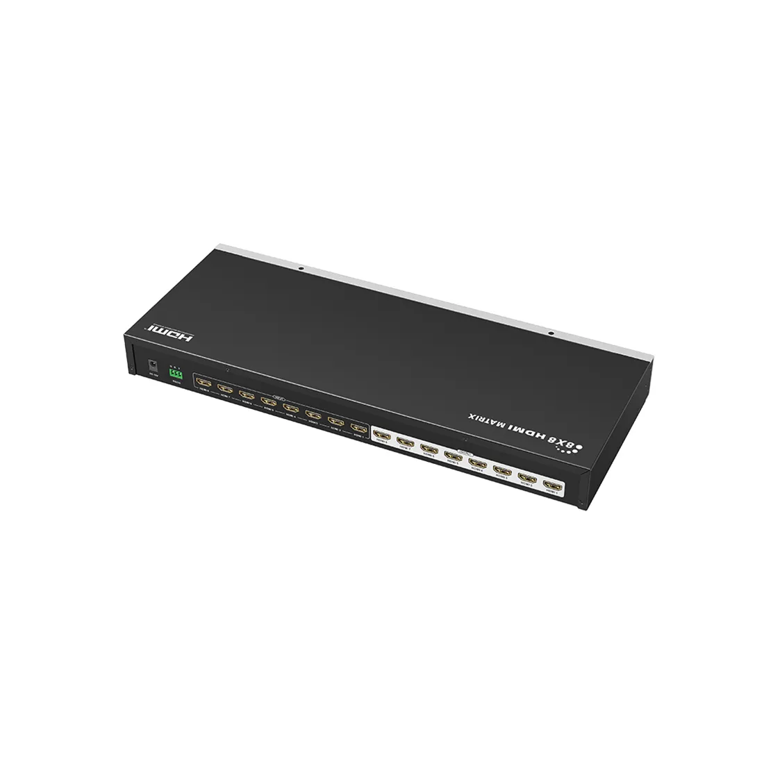 Этот продукт представляет собой матричный коммутатор HDMI 8×8, имеющий 8 HDMI входов и 8 HDMI выходов. 8 HDMI входов позволяют одновременно подключать до 8 источников высококачественного видео, таких как спутниковые системы и проигрыватели Blu-ray. 8 HDMI выходов передают аудио/видео сигналы в высоком разрешении на 8 дисплеев HDTV. Этот матричный коммутатор поддерживает управление через ИК-пульт и кнопочное управление для переключения входов и выходов. Этот продукт идеально подходит для систем безопасности, цифровых мониторинговых систем, образовательных учреждений, выставочных центров, мультимедийных конференций, командных систем и т.д.