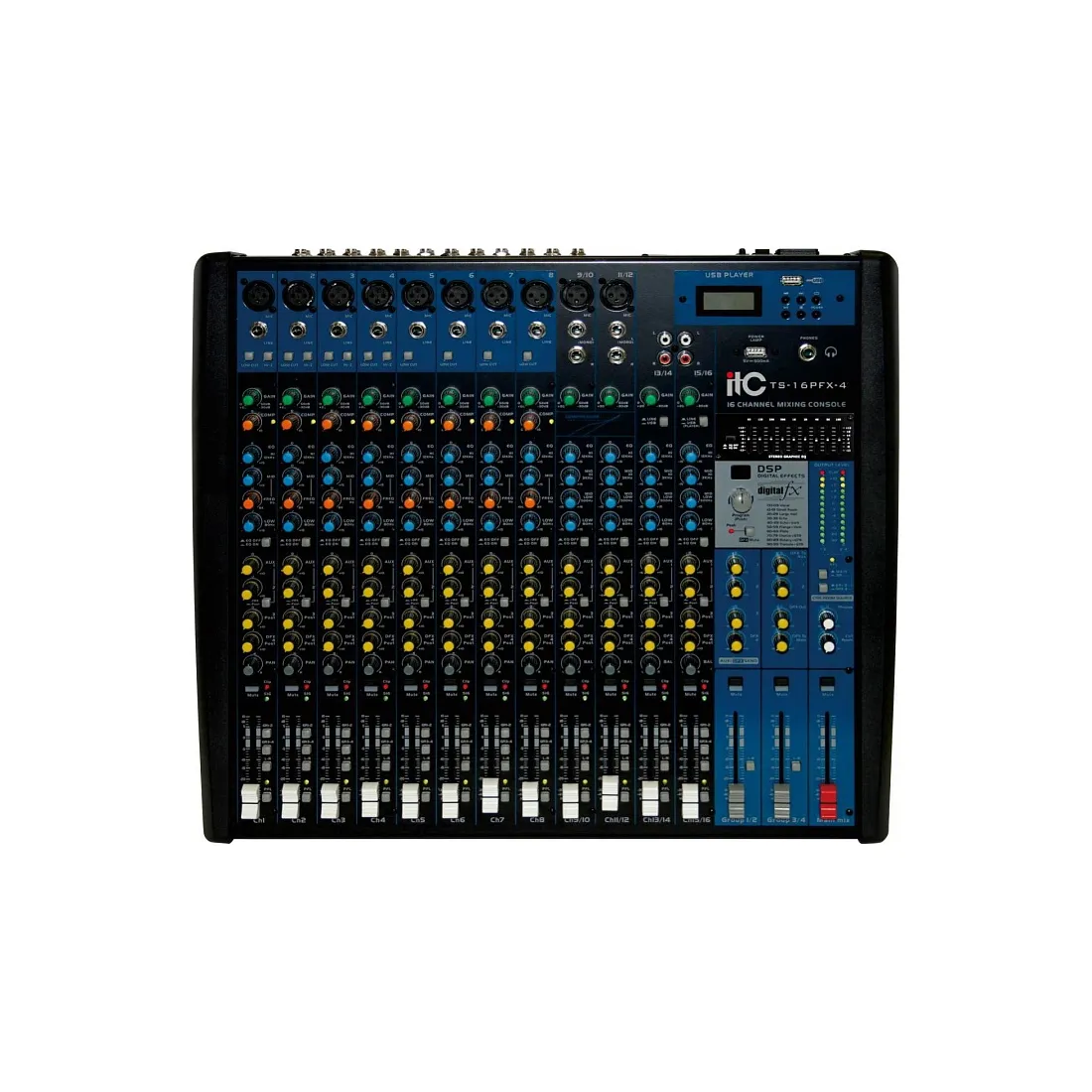 Микшер, ITC, TS-16PFX-4, 16-канальный микшер, 4 групповых выхода, встроенный MP3-плеер и 24-битный DSP