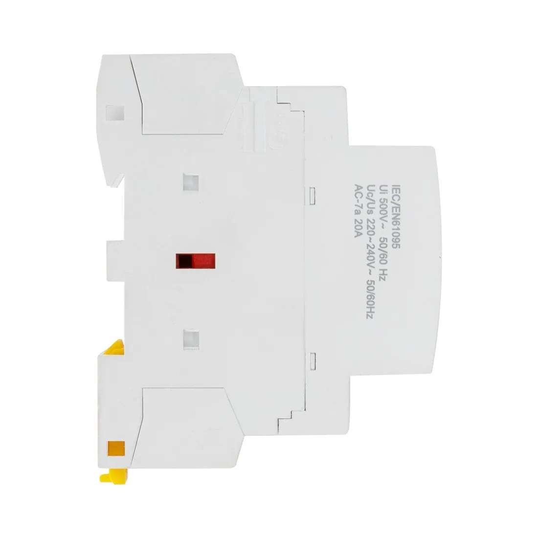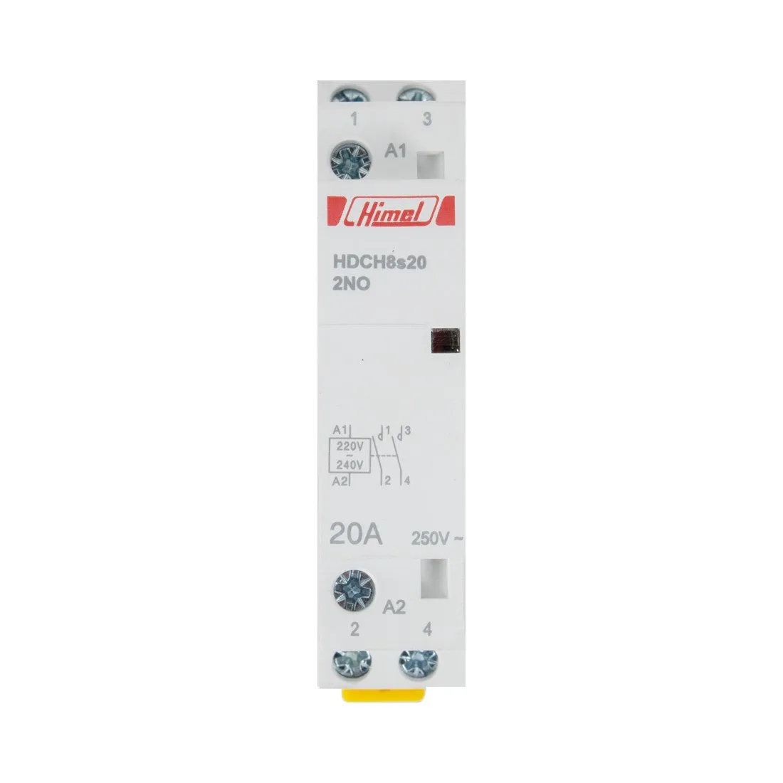 Himel HDCH8S — это двухполюсный модульный контактор с двумя нормально-открытыми (2НО) контактами, номинальным током 20 А и катушкой управления на 230 В AC. Предназначен для коммутации электрических нагрузок в бытовых, коммерческих и промышленных установках, в том числе в системах автоматизации и энергосбережения.
