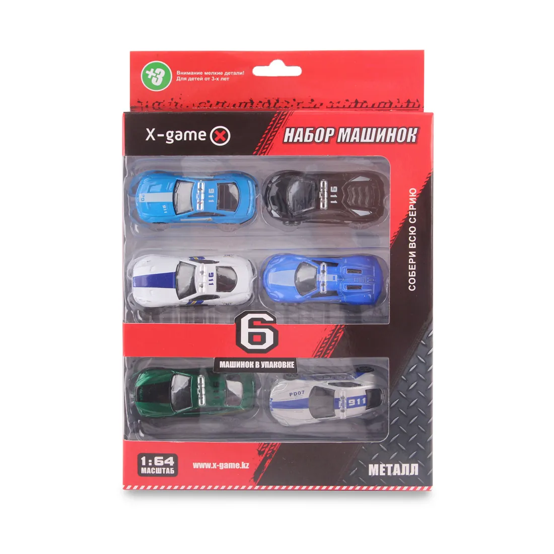 Набор металлических машинок X-Game. Серия «Полиция», в масштабе 1:64. Для детей старше 3-х лет. Машинки изготовлены из качественного пластика и металла. Развивает моторику рук, фантазию, тактильные навыки. Отличный подарок любимому ребёнку. 6 шт. в коробке