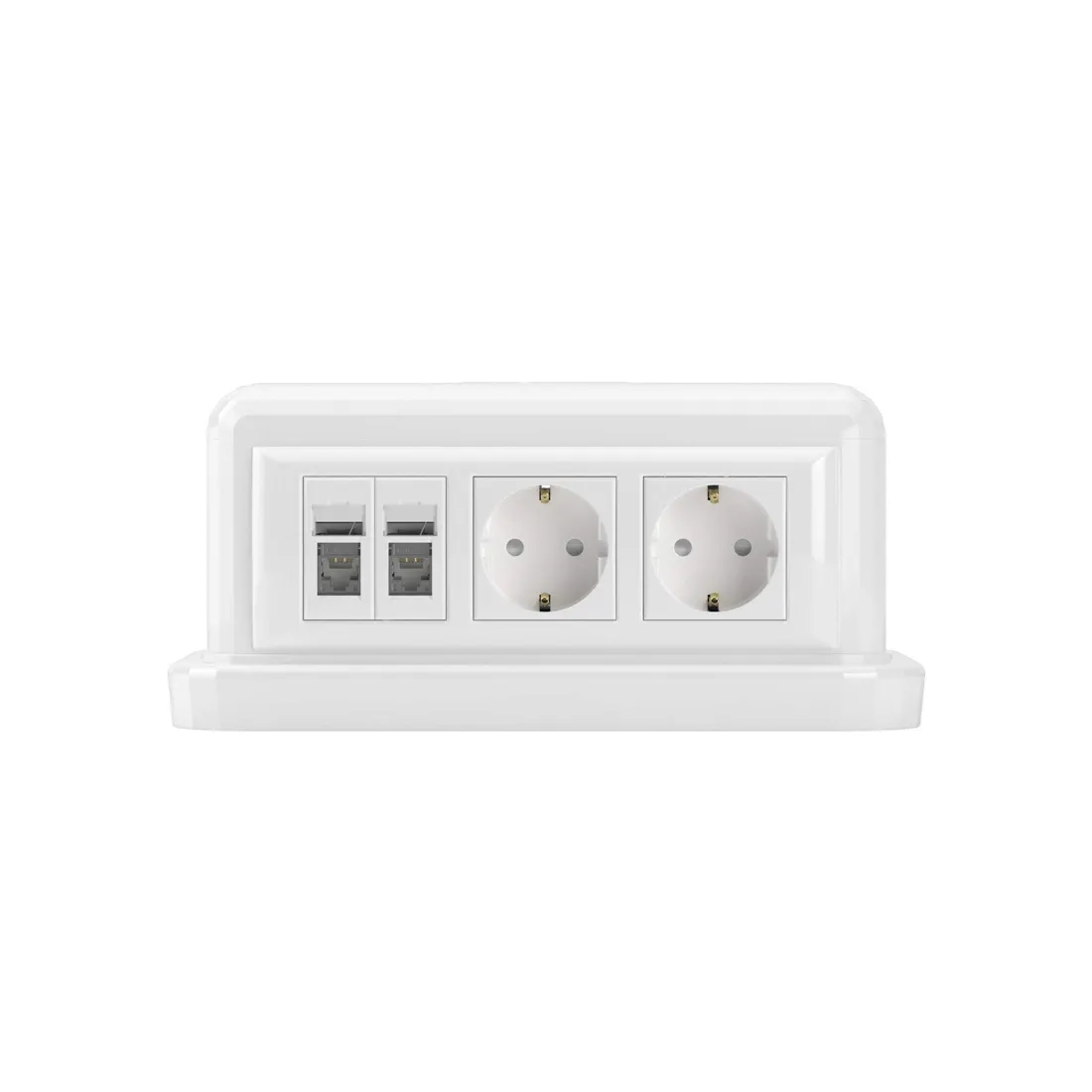 Двустороннее исполнение на 12 модулей (по 6 с каждой стороны) обеспечивает удобный доступ к розеткам и аксессуарам прямо у рабочего места.
