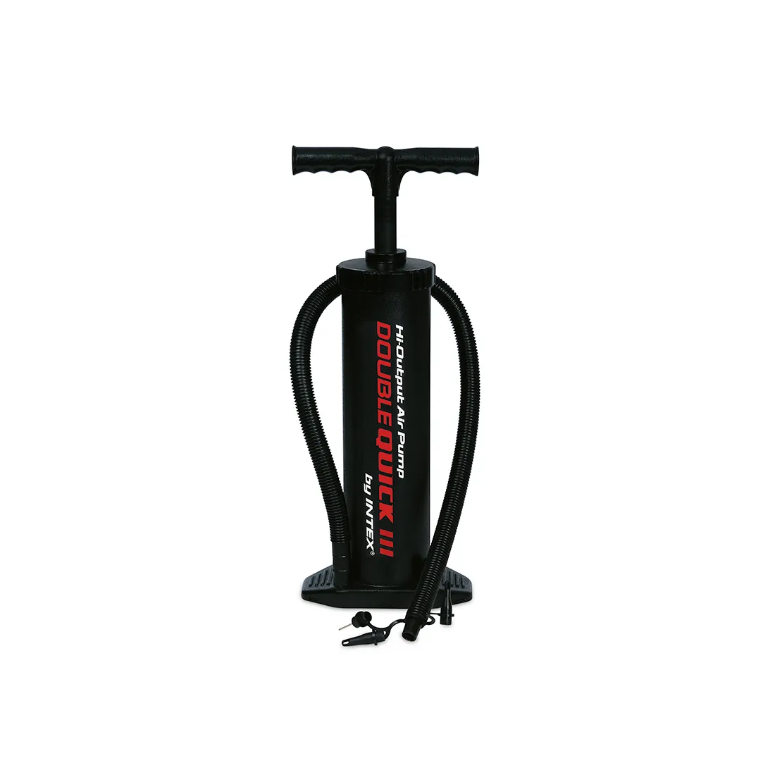 Насос ручной Double Quick III Hand Pump 48 см., INTEX, 68615, Пластик, Шланг 0.8м., 3 насадки включая иглу для накачки мячей, Макс. создаваемого давления до 8psi, Объем камеры 3.3 л., Черный, Цветная коробка