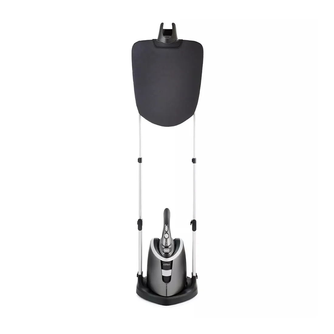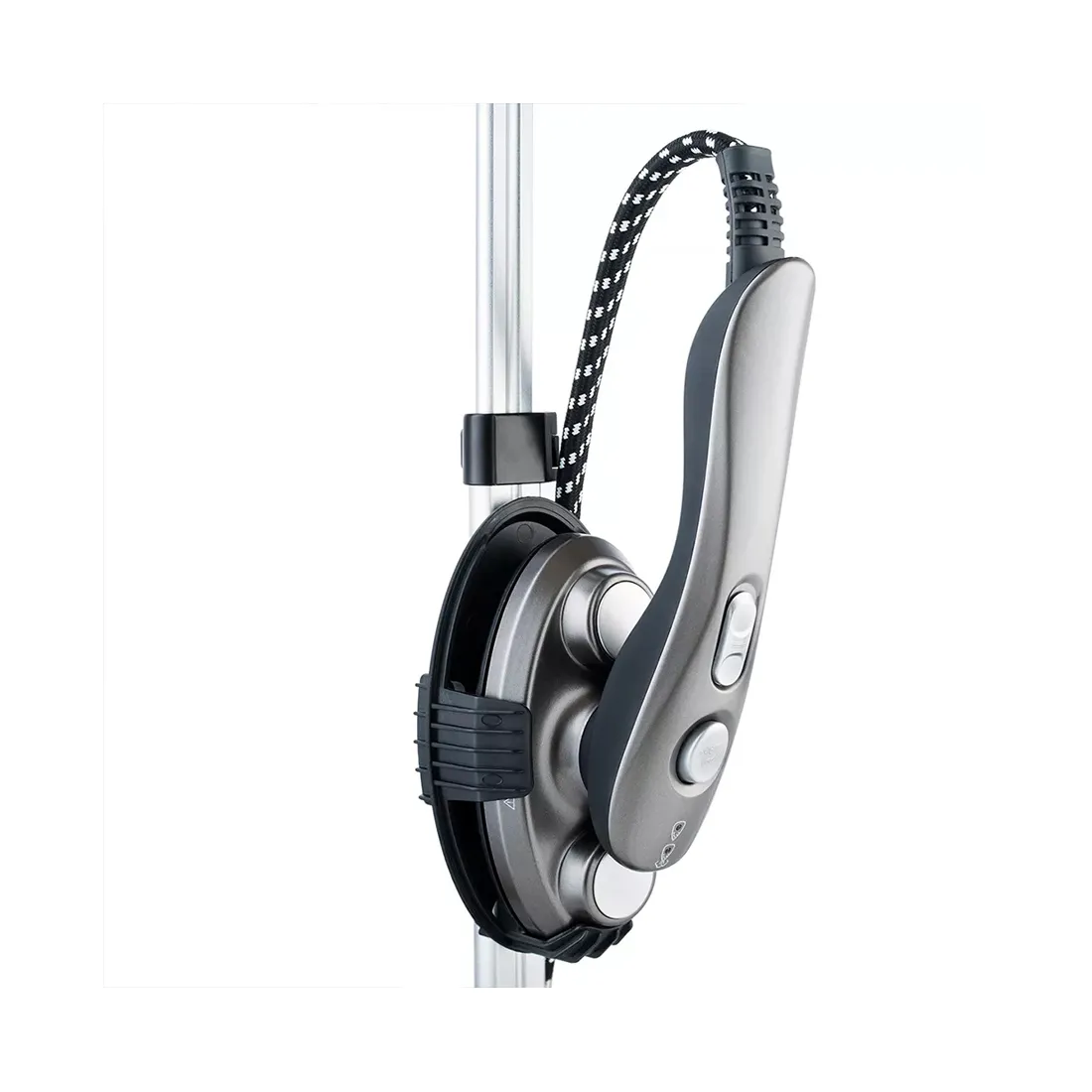 Прибор оснащён держателем утюжка для закрепления на стойке для ещё более удобного отпаривания, а паровой шланг не нагревается во время работы.