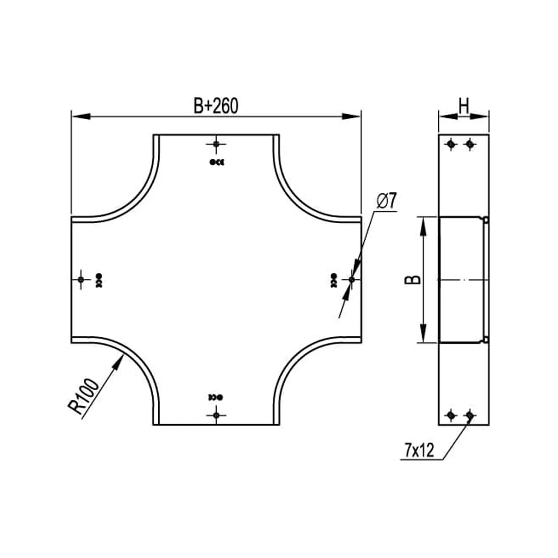Ответвитель DPX крестообразный DKC 100х50 в комплекте с крепежными элементами и соединительными пластинами, необходимыми для монтажа