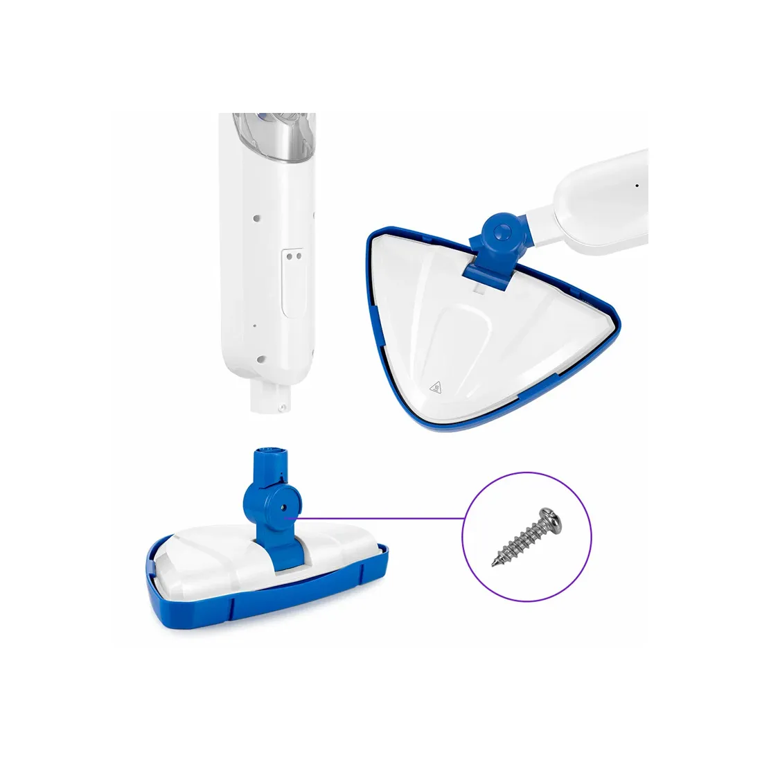 Напольная щётка закреплена на специальном шаровом шарнире с наклоном в двух плоскостях, что делает швабру КТ-1048 очень маневренной и значительно облегчает уборку. Насадка для пола надёжно фиксируется шурупом, который идёт в комплекте.