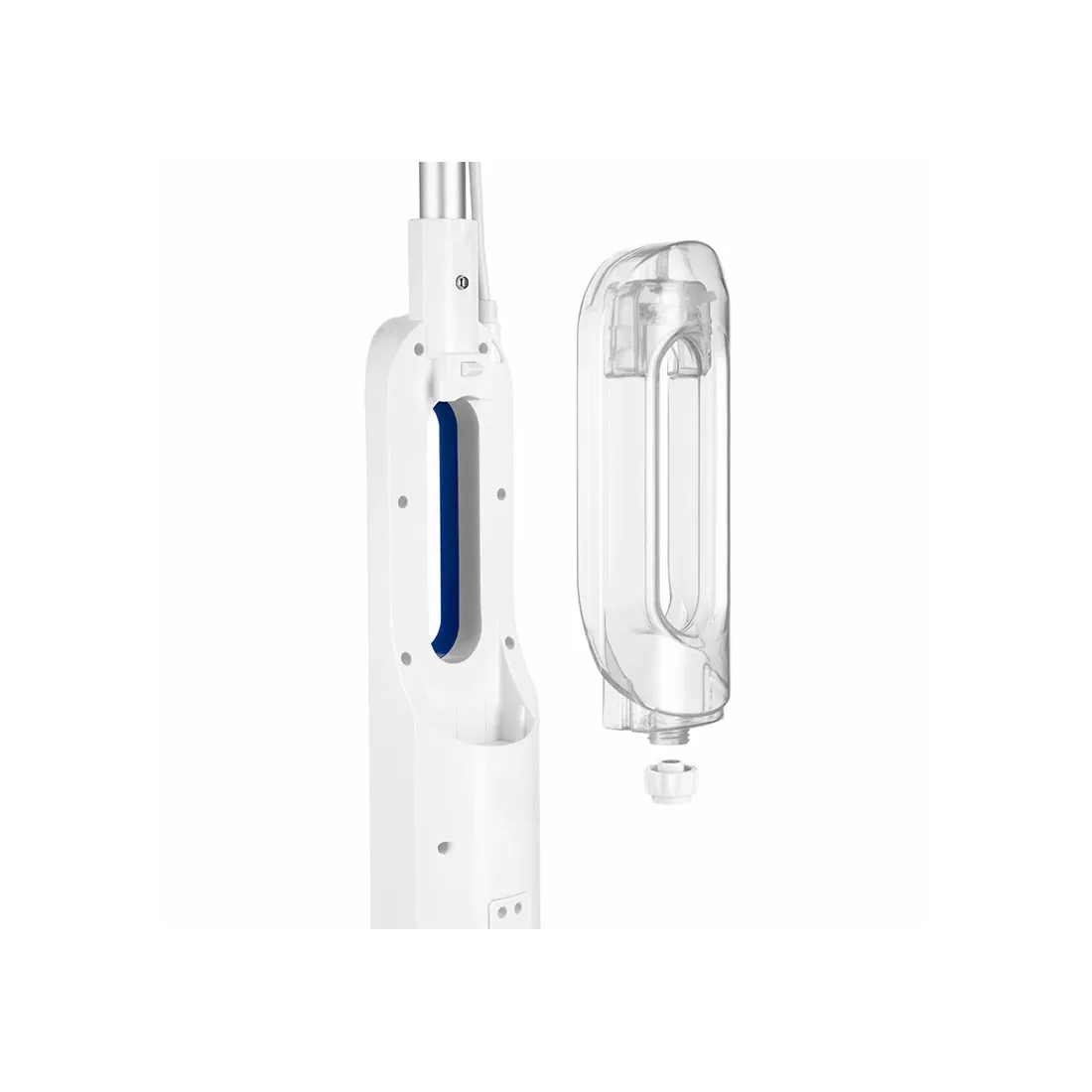 Во время работы парогенератора вода из резервуара проходит через специальный фильтр. Швабра оснащена резервуаром для воды ёмкостью 360 мл, что позволит убрать большую площадь сразу. Конструкция удобно разбирается, чтобы наполнить и вымыть резервуар.
