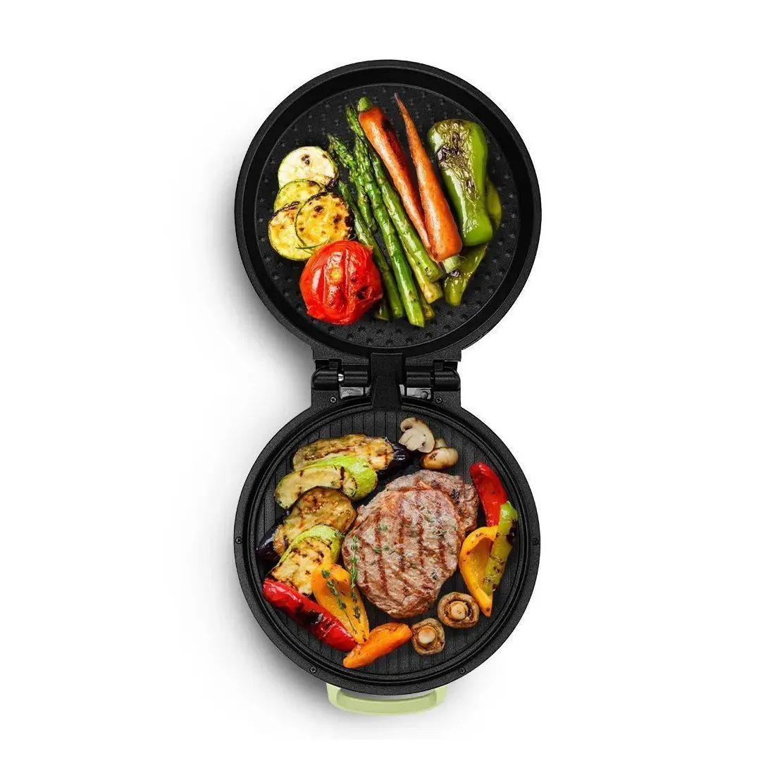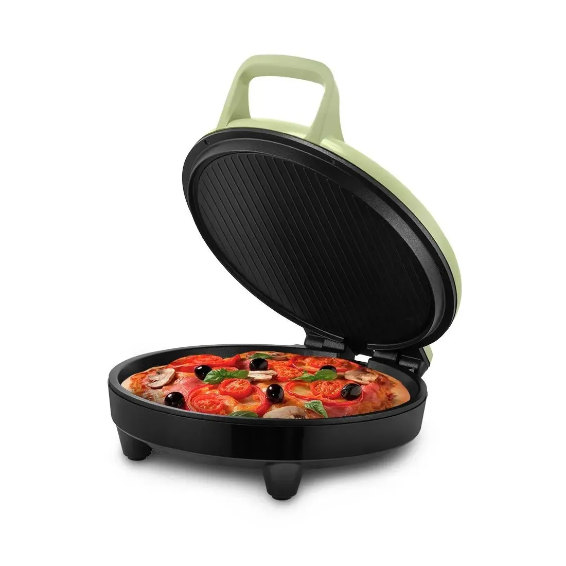 Конструкция пиццамейкера позволяет готовить в одностороннем режиме. Верхняя панель может откидываться на 180°. В данном режиме пиццамейкер превращается в большую жаровню — для приготовления можно использовать обе панели.