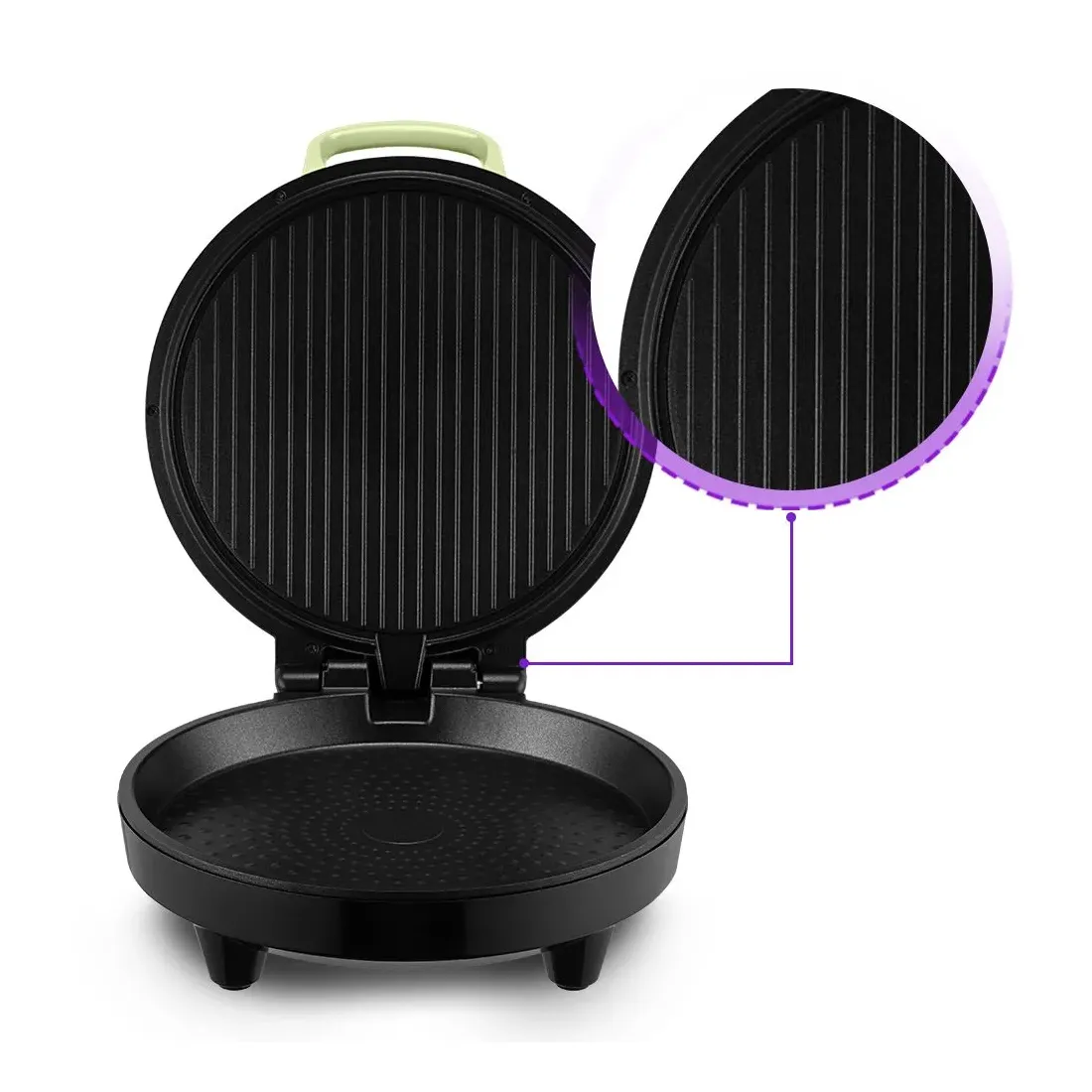 Антипригарное покрытие помогает не прилипать тесту и другим продуктам в процессе приготовления и позволяет готовить с минимальным количеством масла или без него. Также антипригарное покрытие панелей облегчает чистку.