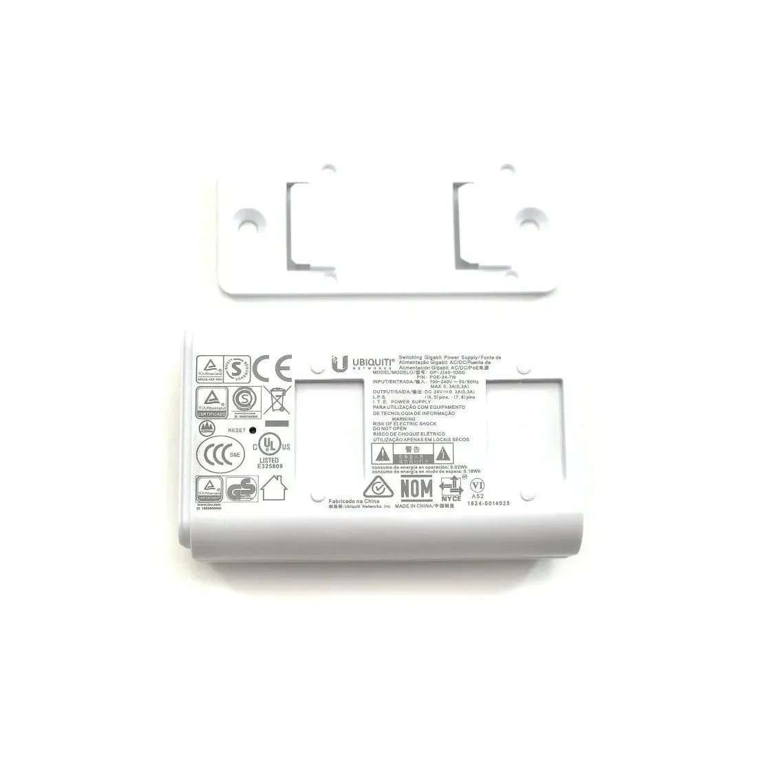 PoE адаптер, Ubiquiti, POE-24-7W-G-WH, PoEInjector 24V 7W Gigabit (белый), инжектор passive PoE, 10/100/1000Mbps Ethernet, 100–240V AC, 24В, 7W