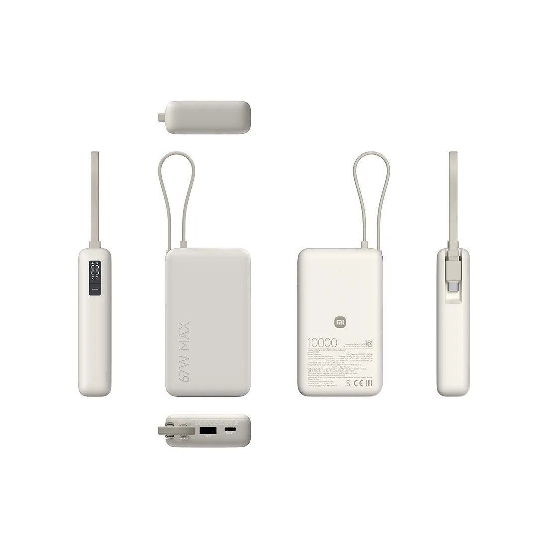 Портативный внешний аккумулятор, Xiaomi, 67W Power Bank 10000 (Integrated Cable) Tan, PB1067/BHR08O0GL, Поддержка быстрой зарядки 67 Вт, Номинальная емкость 6000 mAh, Встроенный кабель USB-C, Размер продукта 105.2 65.2 26.9 мм, Бежевый