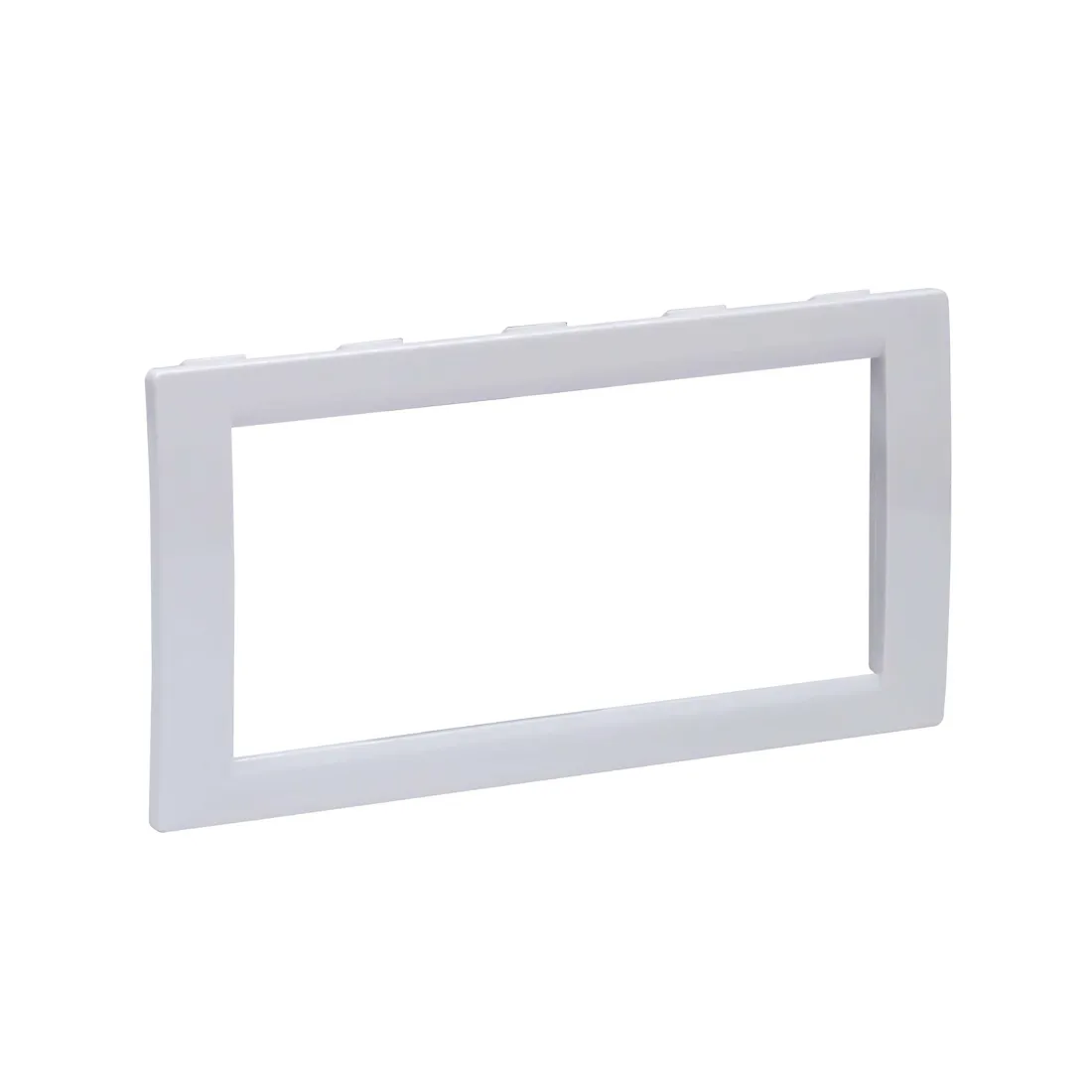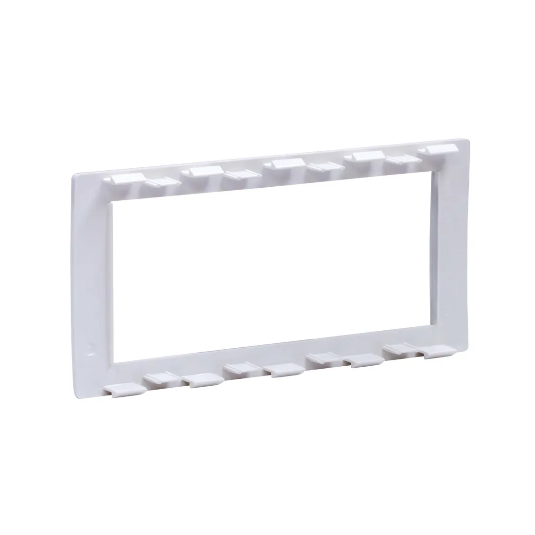 Рамка универсальная 4-модульная для ЭУИ. Назначение: монтаж ЭУИ серий «Viva» и типоразмера 45х45 мм в пластиковые короба серии «In-liner Front», алюминиевые короба и колонны «Aero», лючки и напольные башенки BUS. Характеристики: материал – АБС-пластик; универсальная − устанавливается поверх каркасов: F0000M, F0000MB, F0000A, F0000L; 2-модульная рамка устанавливается поверх одного 2-модульного каркаса; 4-модульная рамка − поверх двух 2-модульных каркасов; 6-модульная рамка − поверх трех 2-модульных каркасов.