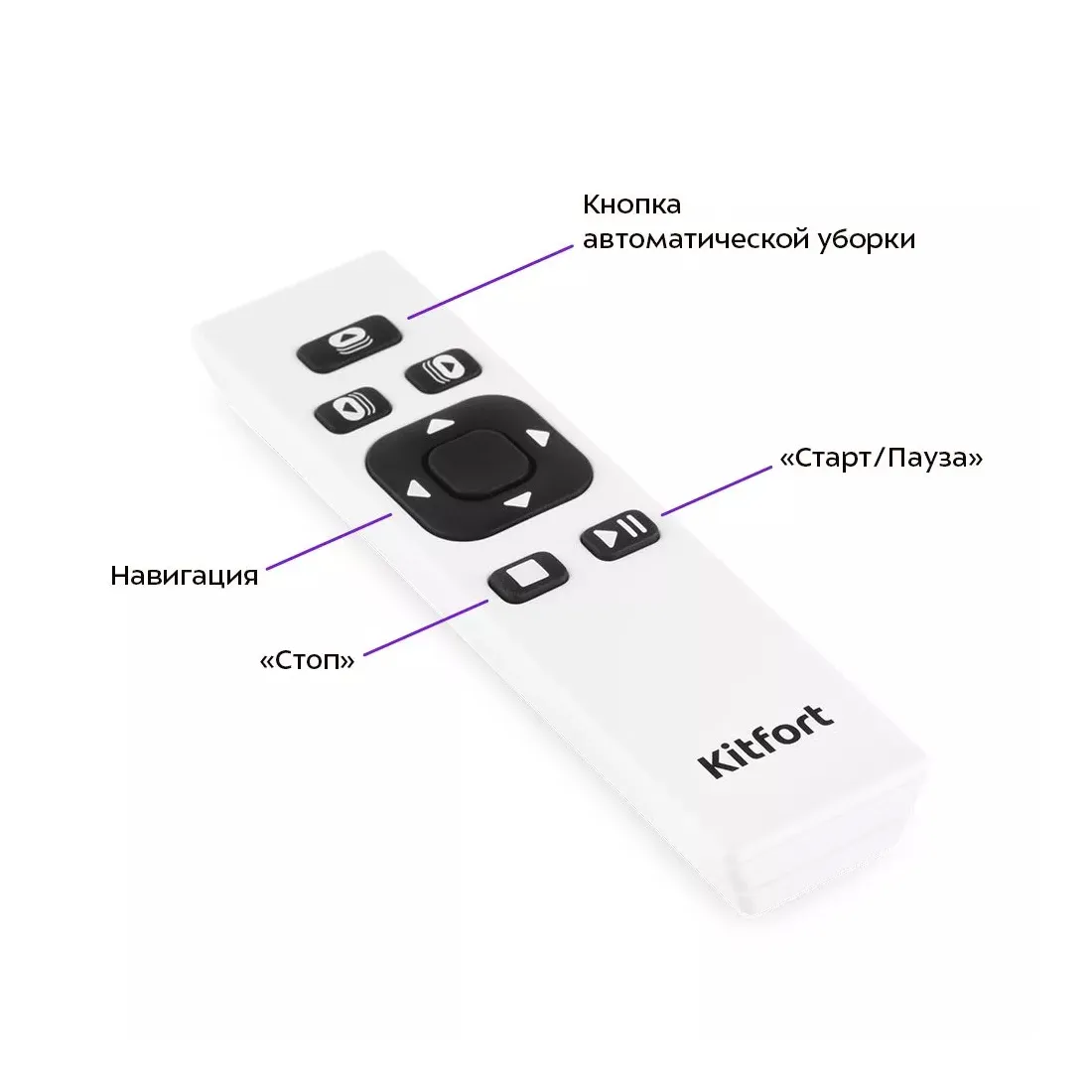 Управление роботом осуществляется при помощи пульта дистанционного управления. Вы можете дистанционно запустить уборку, поменять режим или остановить уборку. Кнопки навигации служат для управления роботом в ручном режиме.