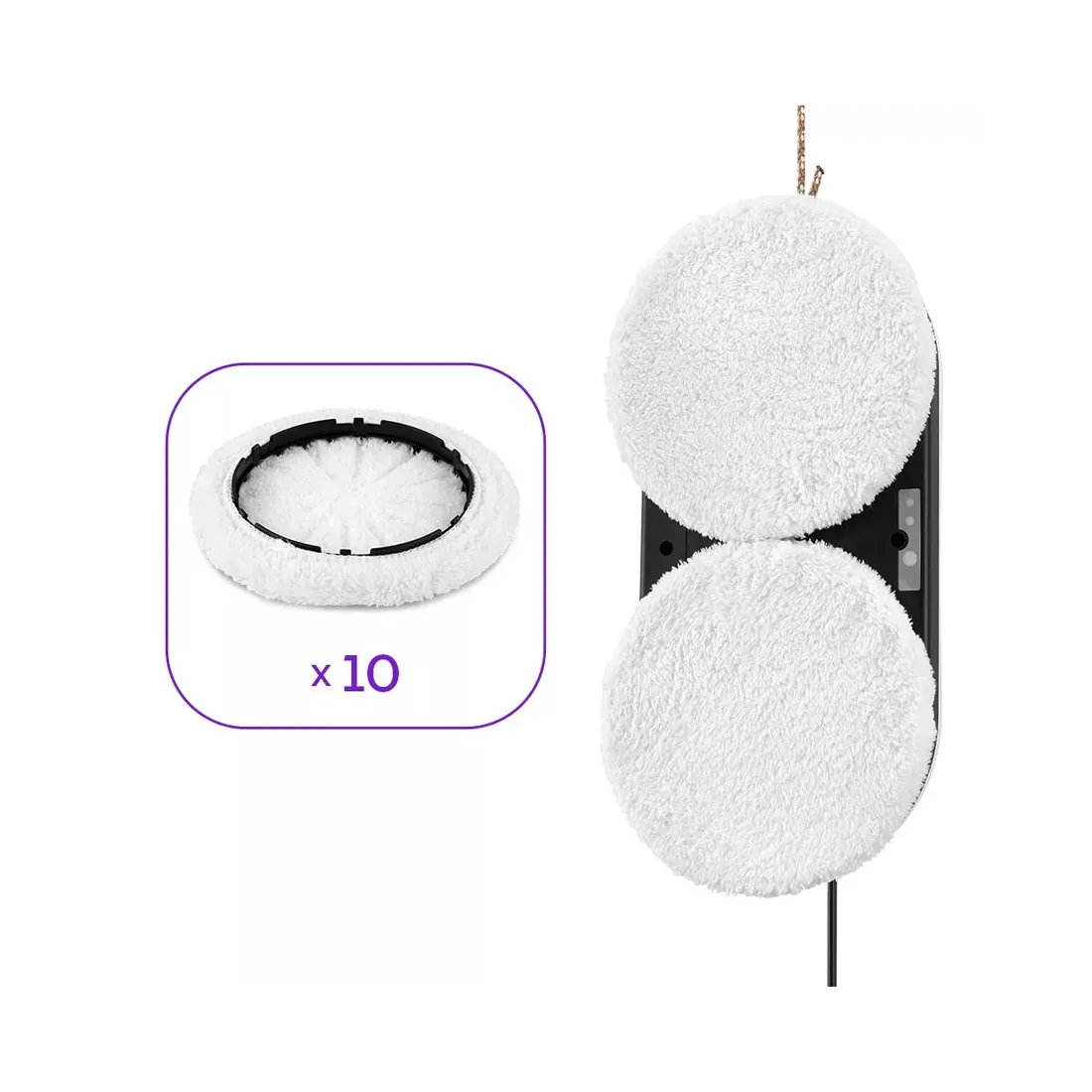 К двум держателям тряпок на дне робота крепятся чистящие тряпки. В комплекте 5 пар чистящих тряпок, поэтому вы можете их менять во время уборки. Тряпки выполенеы из микрофибры и поэтому они отлично оттирают и впитывают грязь.