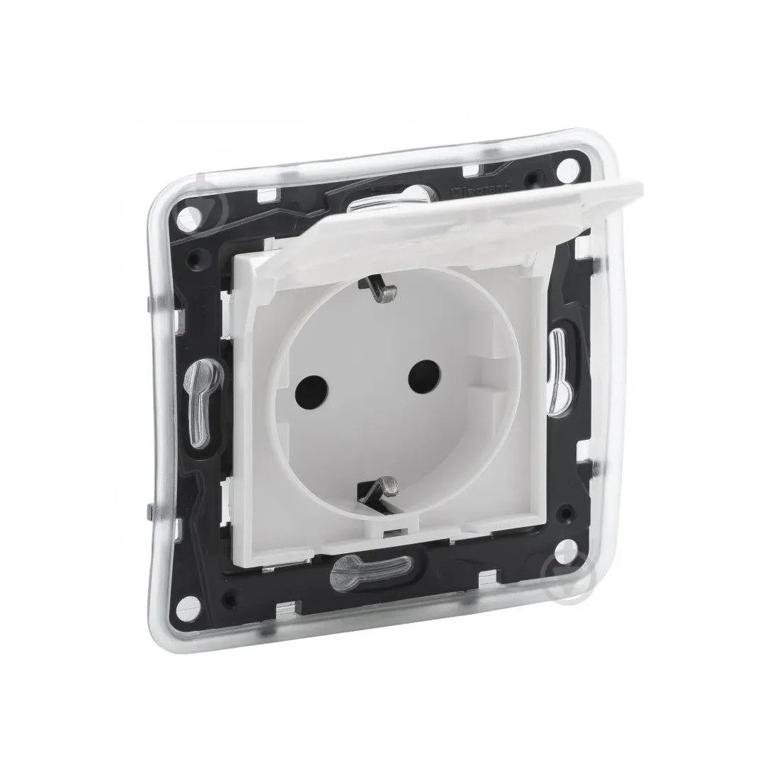 - Крышка с классом защиты IP44: Защищает розетку от влаги и пыли, что делает её идеальной для использования в помещениях с повышенной влажностью.