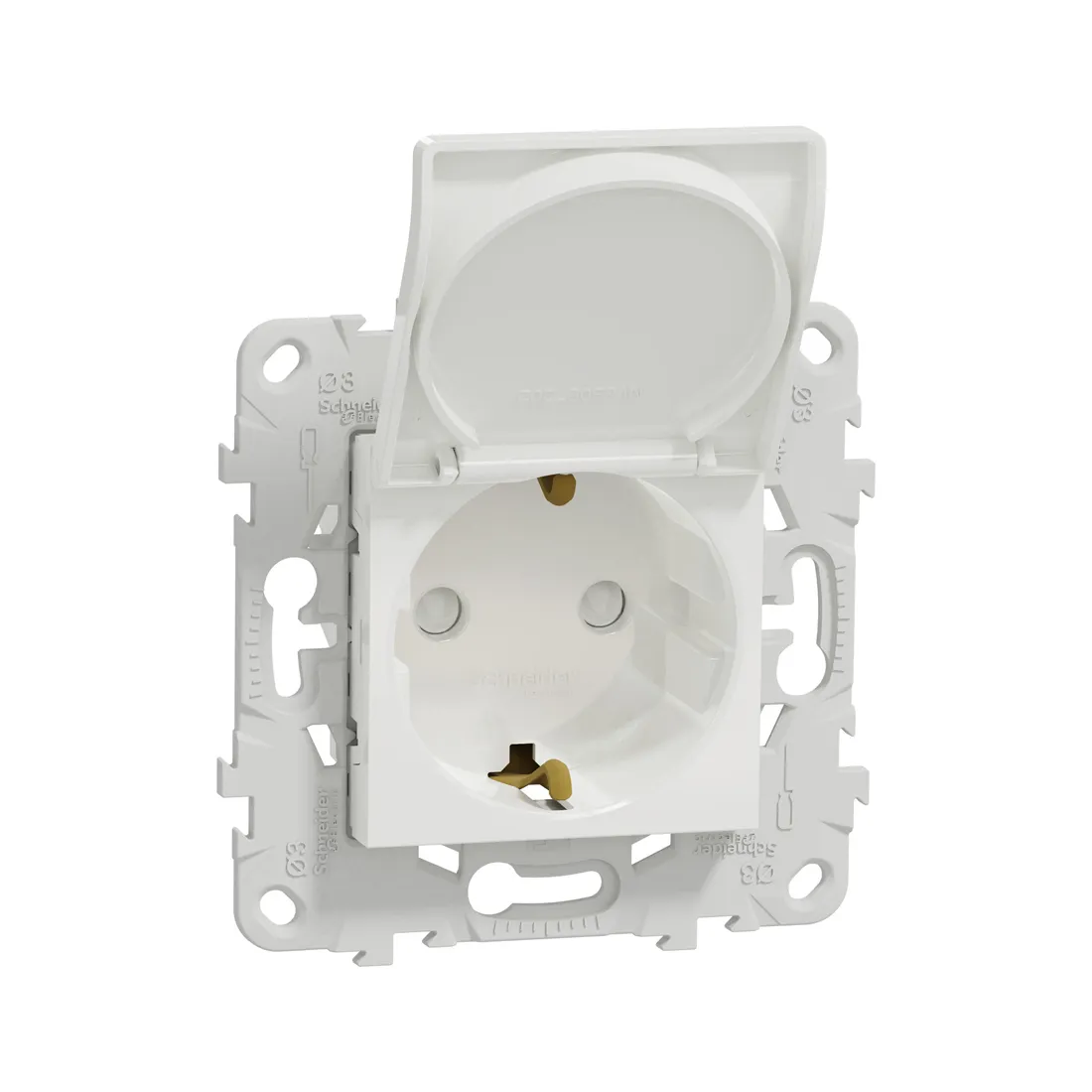 Розетка с заземлением, SE, NU503718TA, Unica New с/штор с/кр IP21 белый
