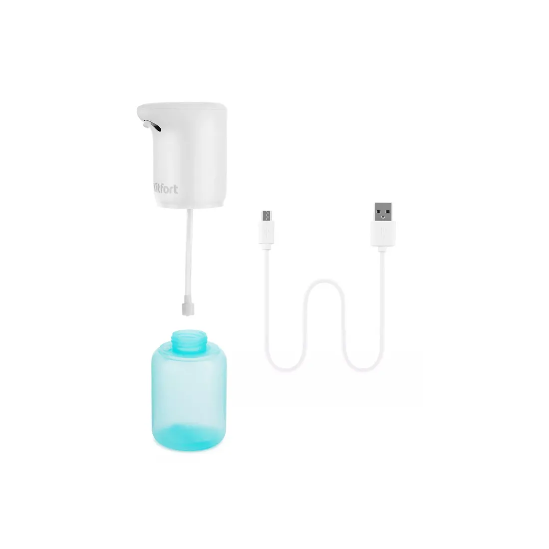 Диспенсер работает от аккумулятора и легко заряжается от USB. В комплекте с ним идёт зарядный шнур. Он подсоединяется к USB-разъёму, расположенному сзади диспенсера.