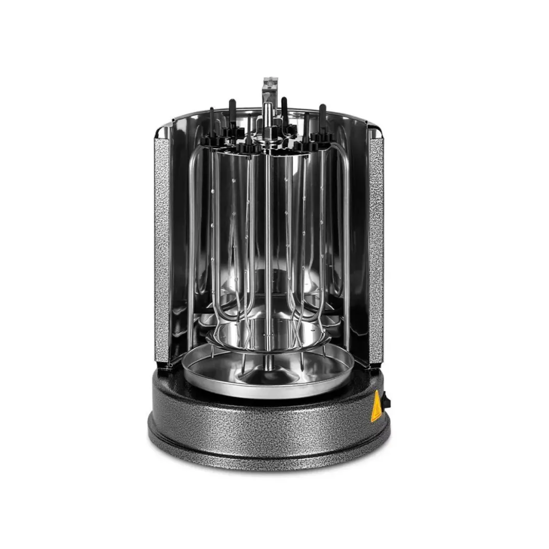 В комплекте к шашлычнице КТ-1404 идут 6 боковых шампуров и 1 центральный. Помимо шашлыка из мяса, рыбы или овощей, приготовьте также шаверму, люля-кебаб, сардельки, кукурузу-гриль, картошку или гренки! За 1 раз вы можете приготовить до 4 кг еды.