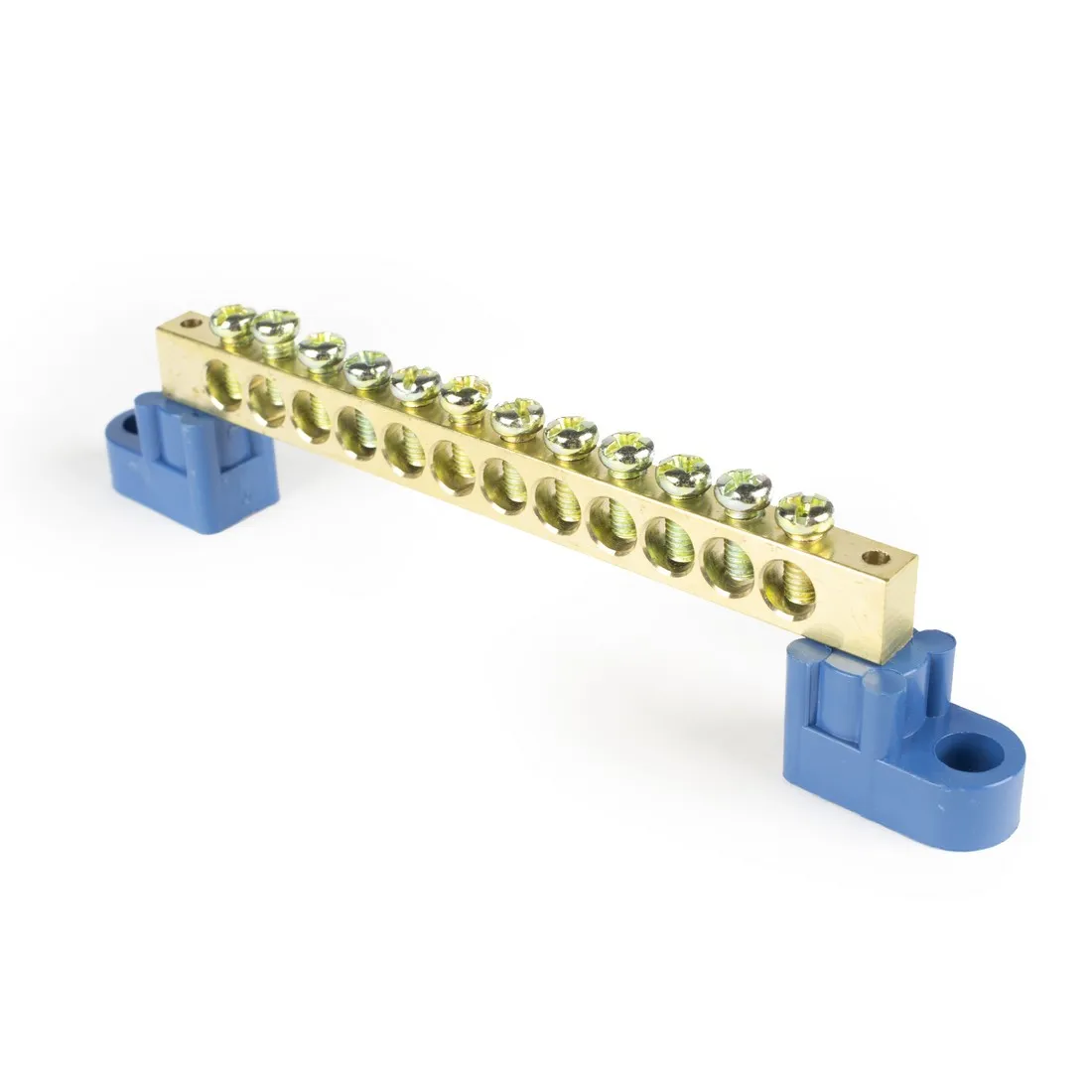 Шина нулевая, Deluxe, TS-0812А 12 групп, 8х12 мм (голубая) на изоляторах