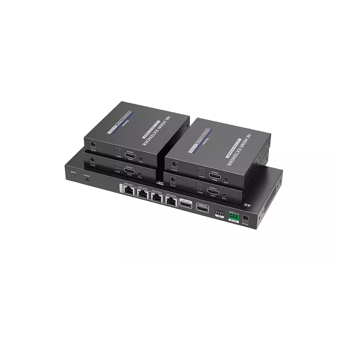 Передатчик имеет встроенный разветвитель (сплиттер) видеосигнала на четыре выхода RG45 для подлючения приёмников HDMI по витой паре.