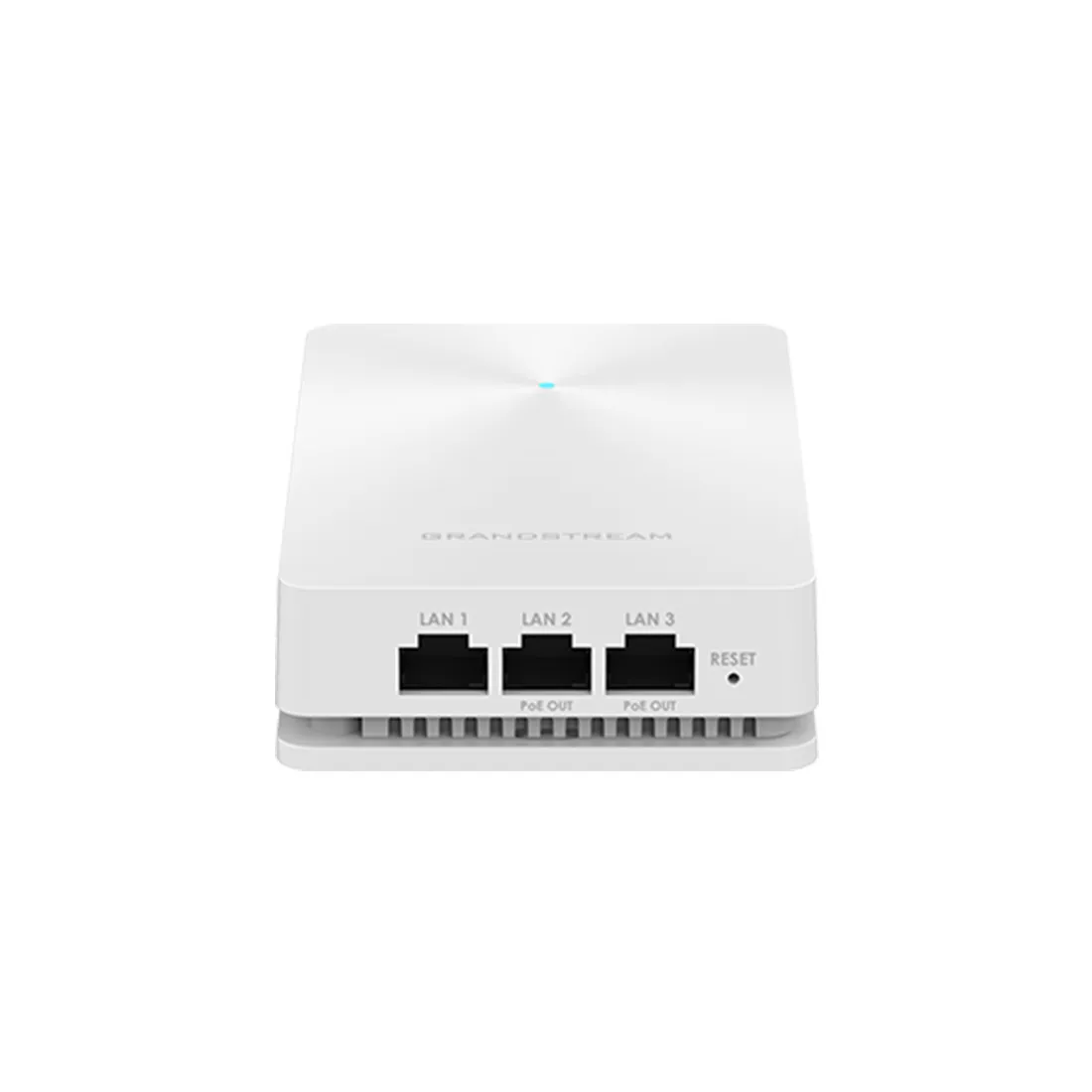 GWN7624 — это встраиваемая в стену точка доступа Wi-Fi, которая включает в себя три гигабитных сетевых порта, два из которых обеспечивают PoE, для обеспечения подключения к Интернету и питания таких устройств,