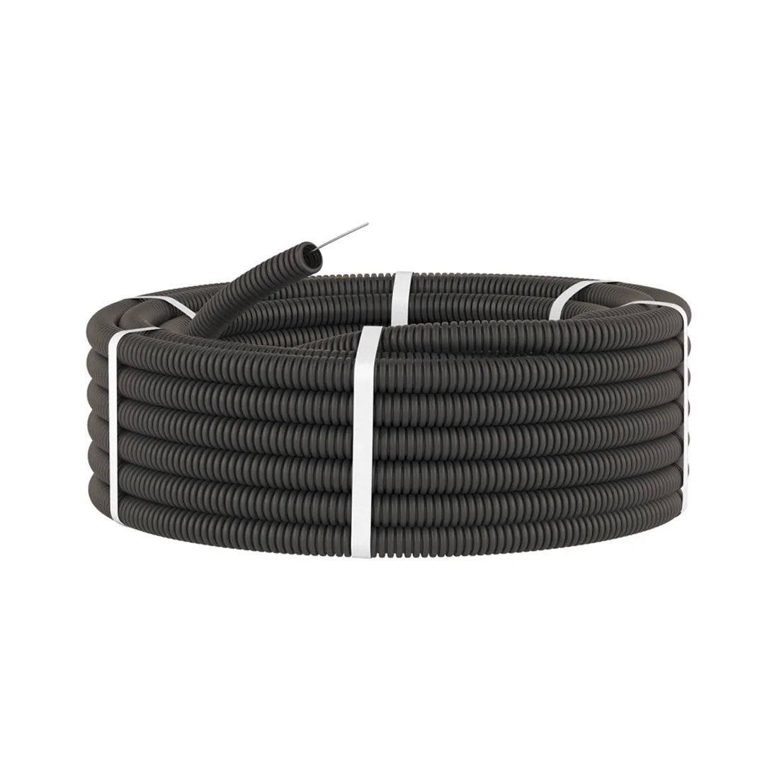 Труба ПНД гибкая гофр., DKC, 71725, д.25мм, лёгкая с протяжкой, безгалогеновая, УФ стойкая, 50м, цвет чёрный