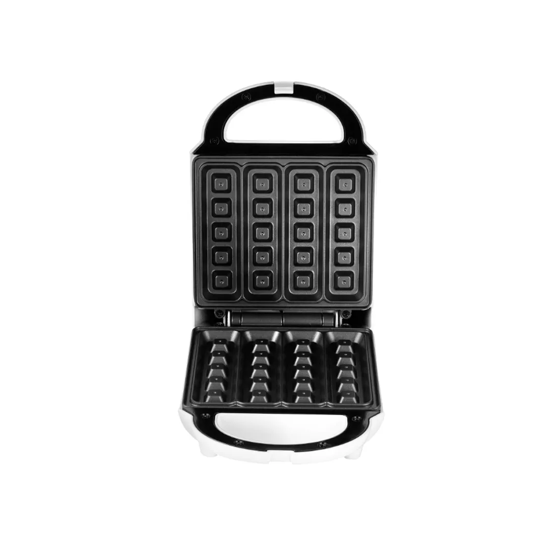 Корпус выполнен из термоустойчивого пластика. Формы покрыты антипригарным покрытием, они быстро нагреваются и обеспечивают равномерное пропекание теста с двух сторон.