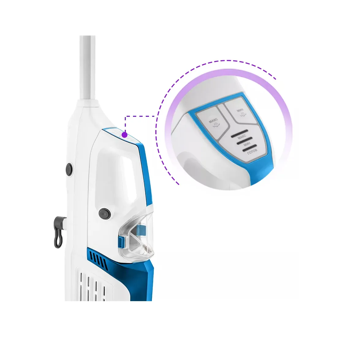 Паровым пылесосом Kitfort КТ-556 с функцией вертикальной парковки можно пользоваться как пылесосом и паровой шваброй по отдельности и одновременно – всасывая пыль, мелкий мусор, очищая поверхность от грязи, въевшихся пятен и жира при помощи горячего пара.