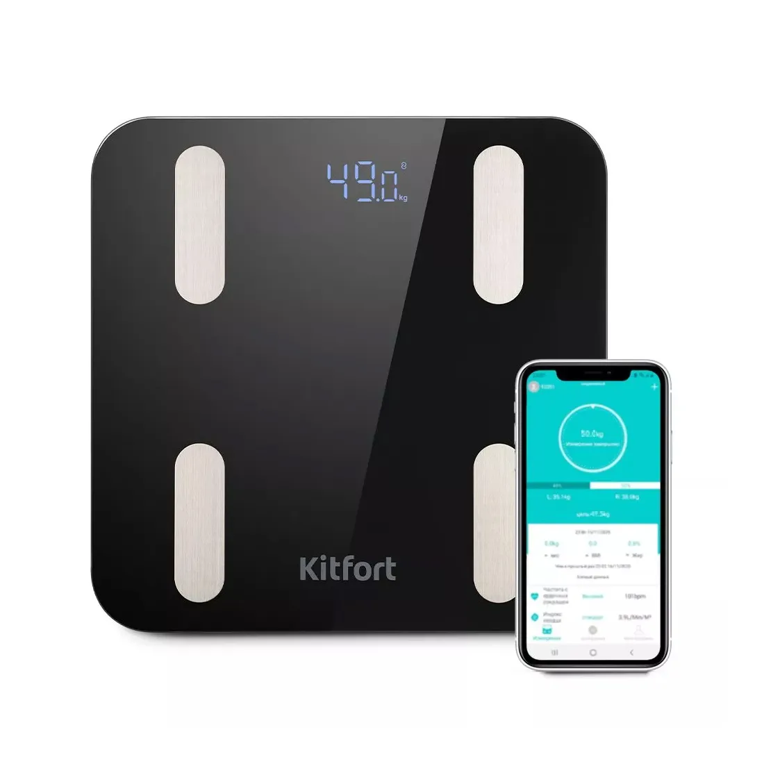 Электронные напольные весы обеспечивают высокую точность измерения, что очень важно людям, следящим за своим весом. Модель КТ-813 представляет поколение «умных» весов, т.к. их можно подключить к приложению и анализировать параметры тела.