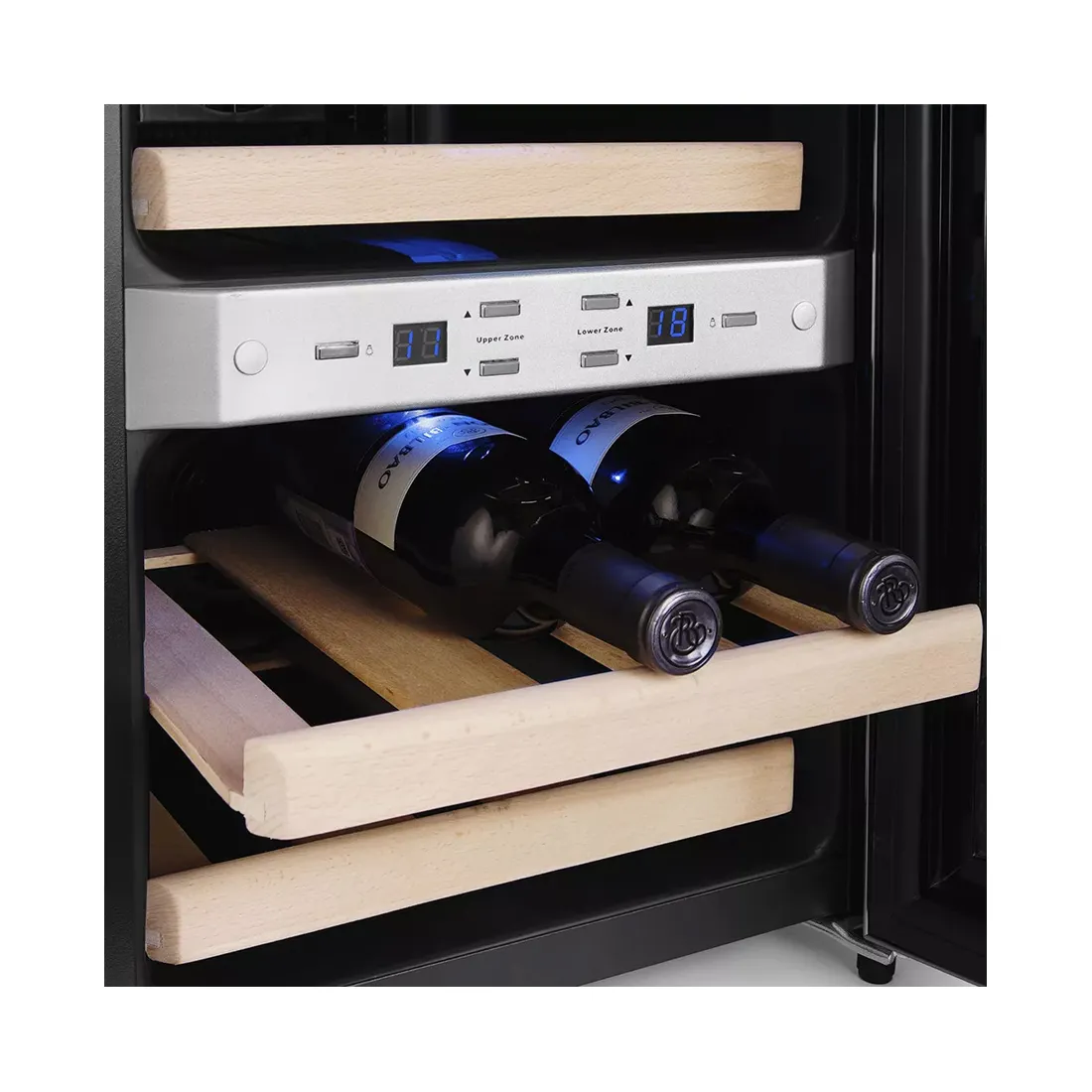 Важной особенностью винного шкафа Kitfort КТ-2404 является наличие двух климатических зон, в которых можно хранить разные сорта вина при разной температуре.