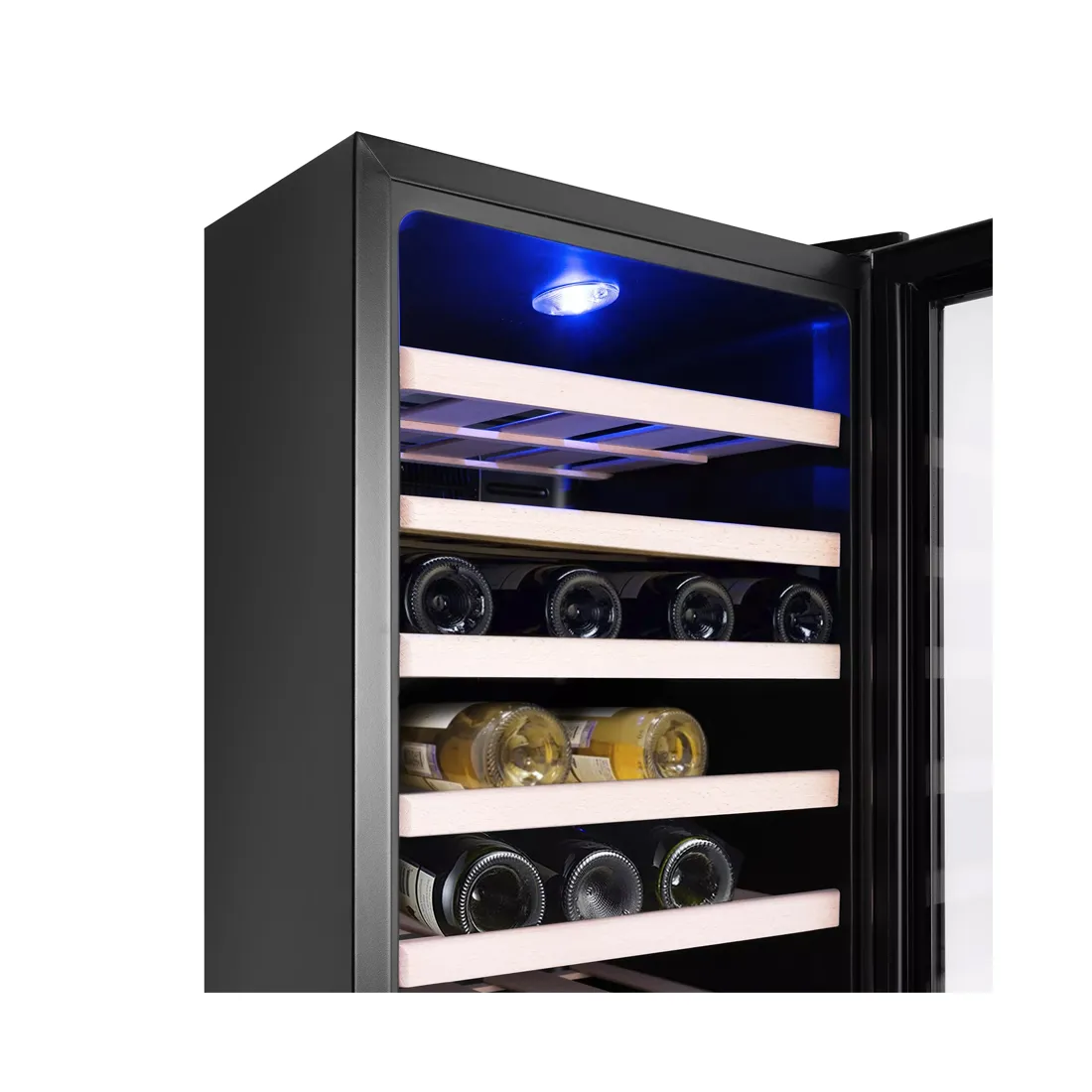 Устройство оснащено семью отсеками с общей вместимостью 70 л, что позволяет с максимальным удобством расположить внутри 28 бутылок объемом по 0.75 л. Прибор действует при уровне шума 41 дБ, потребляя 161 кВтч/год.