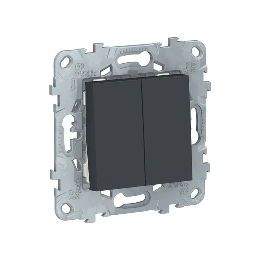 Дополнительное описание: Выключатель двухклавишный Schneider Electric UNICA NEW (белый) без подсветки предназначен для сетей до 250 В на ток до 10 А.